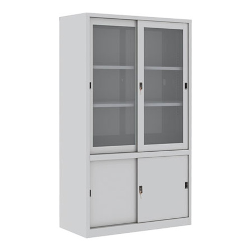 - Phần dưới có 2 cánh sắt lùa, chuyển động nhờ bánh xe treo trên cách ngăn ngang, có 1 khóa, 2 tay nắm nhựa.